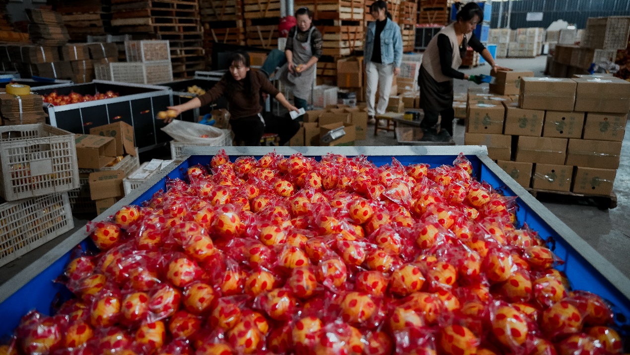 △柠檬在电商仓库分拣、打包、发货,带动周边村民就业。李靖 摄